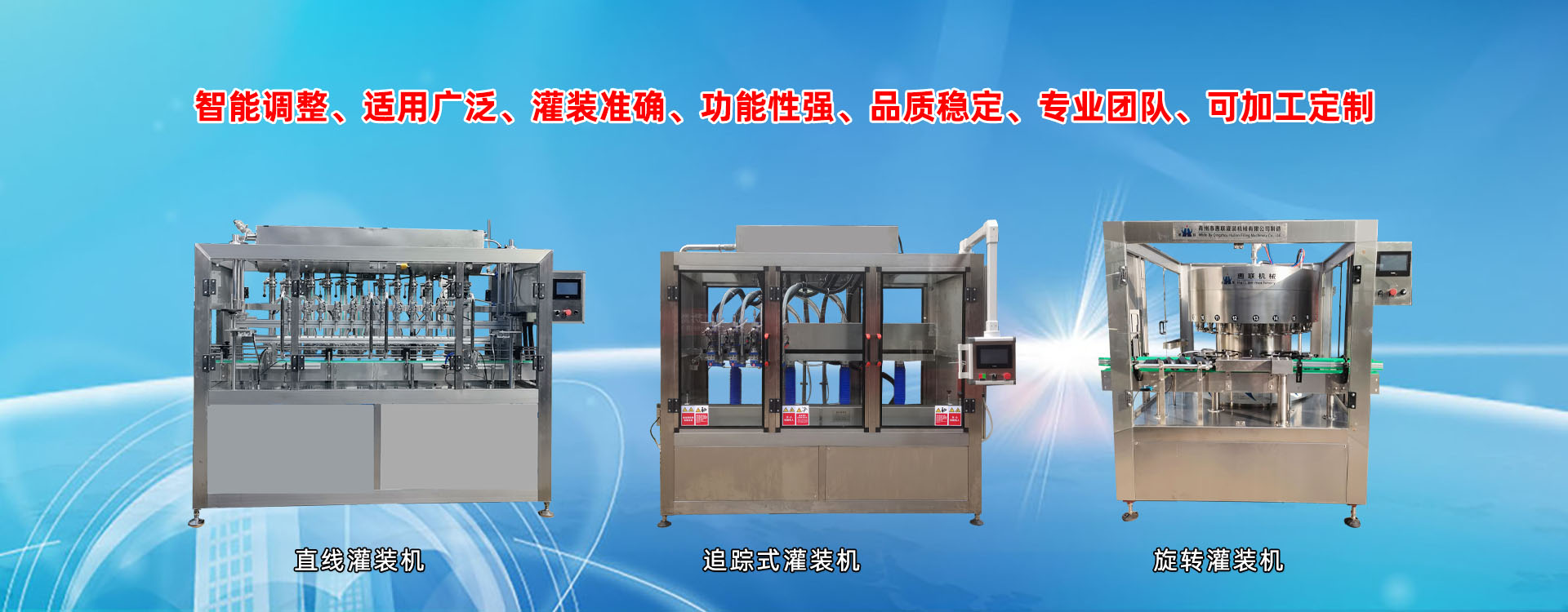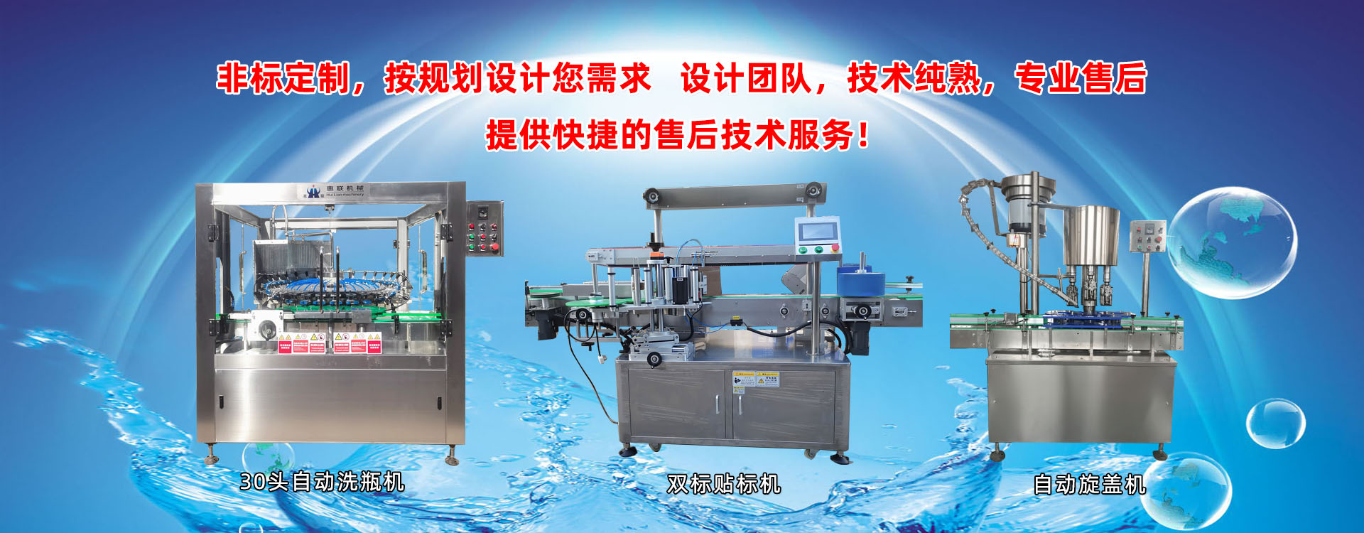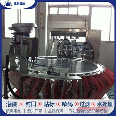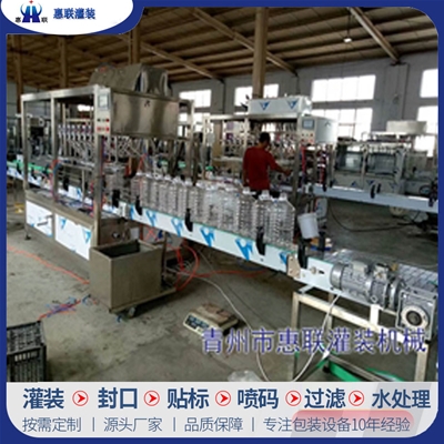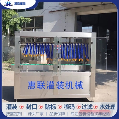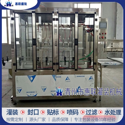 青州市惠聯(lián)灌裝機械有限公司是一家集生產(chǎn)研發(fā)、銷售、服務于一體的液體灌裝成套設備生產(chǎn)企業(yè),可根據(jù)廠家要求設計合理液體灌裝生產(chǎn)線,為用戶提供技術咨詢、設計工藝、場區(qū)平面布置、工藝改造、設備安裝調試等完善服務。 公司生產(chǎn)制造各種類型液體灌裝機、過濾機,水處理設備及液體灌裝成套設備。主要產(chǎn)品有:白酒、葡萄酒、黃酒等酒水灌裝機、食用油、機油、潤滑油等油類灌裝機、醬油醋、老抽、生抽等調味品灌裝機、防凍液、玻璃水灌裝機、酒精、84消毒液灌裝機、車用尿素灌裝機、口服液灌裝機、洗滌劑灌裝機等多種液體、膏體灌裝設備,全自動/半自動灌裝機型號多,規(guī)格全,洗瓶機、瓶子封口機、打塞機、熱縮機、瓶子烘干機、貼標機、噴碼機、輸送線、裝箱機、水處理設備等全套生產(chǎn)線相關配套設備齊全,自產(chǎn)自銷,一站式購齊,售后無憂。
