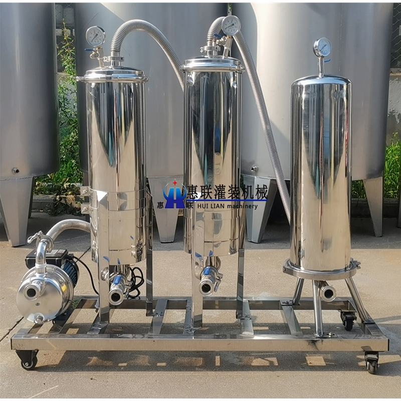 白酒過濾機是采用高分子聚乙烯為原料經(jīng)特殊工藝燒結而成的,依據(jù)分子篩原理,屬純物理性過濾,結構穩(wěn)定,不會和酒中成份發(fā)生任何化學反應。廣乏適用于各類白酒、果酒等的除濁過濾,濾后酒液清亮透明,口感綿軟,用于灌裝前的過濾。